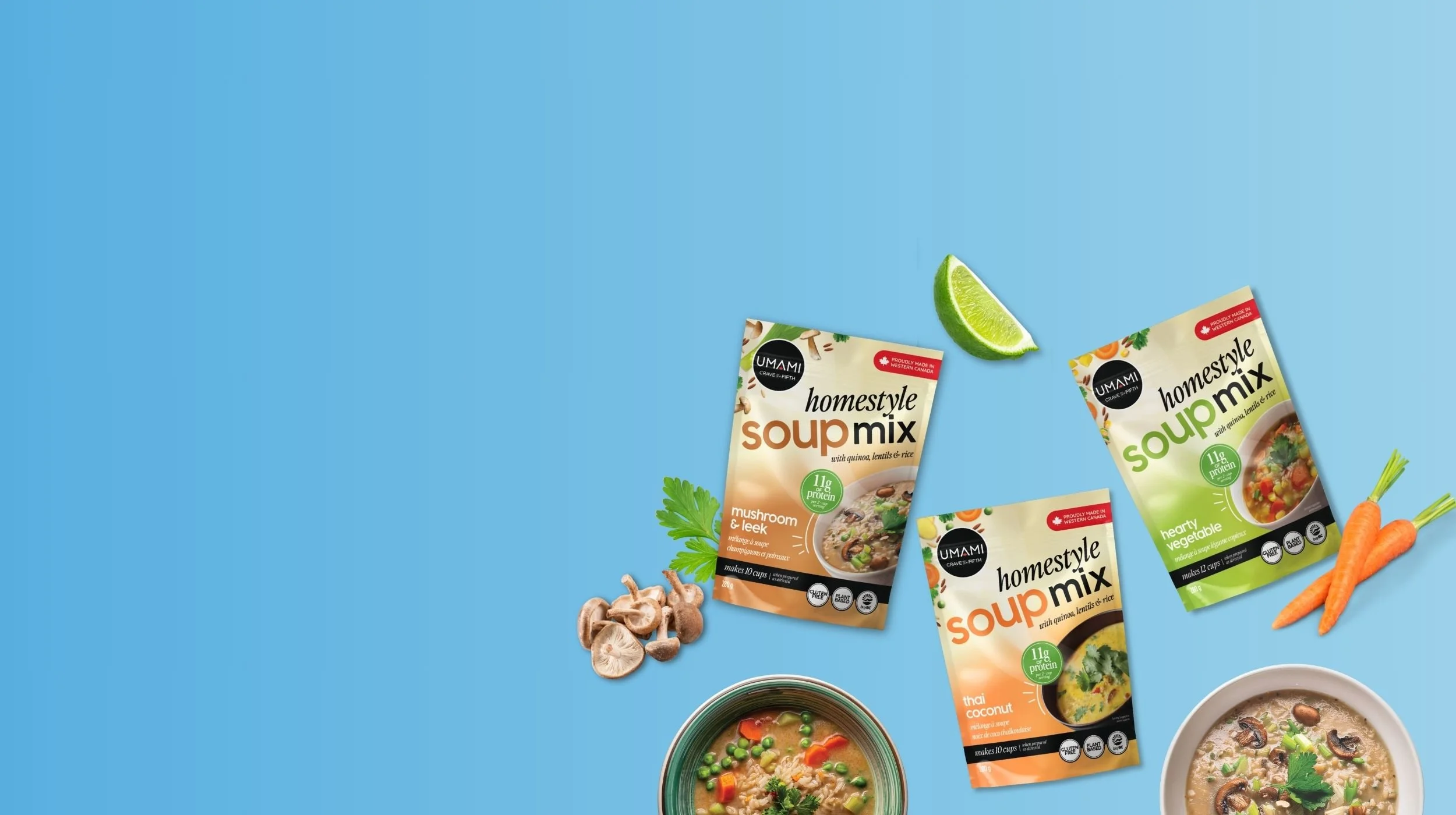 Enjoy an earthy and full-bodied soup made with quinoa, lentils, and rice, combined with dried mushrooms, leeks, and comforting spices. Rich in protein and full of flavour!